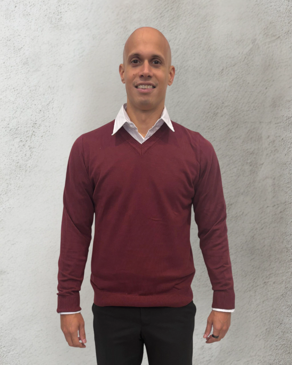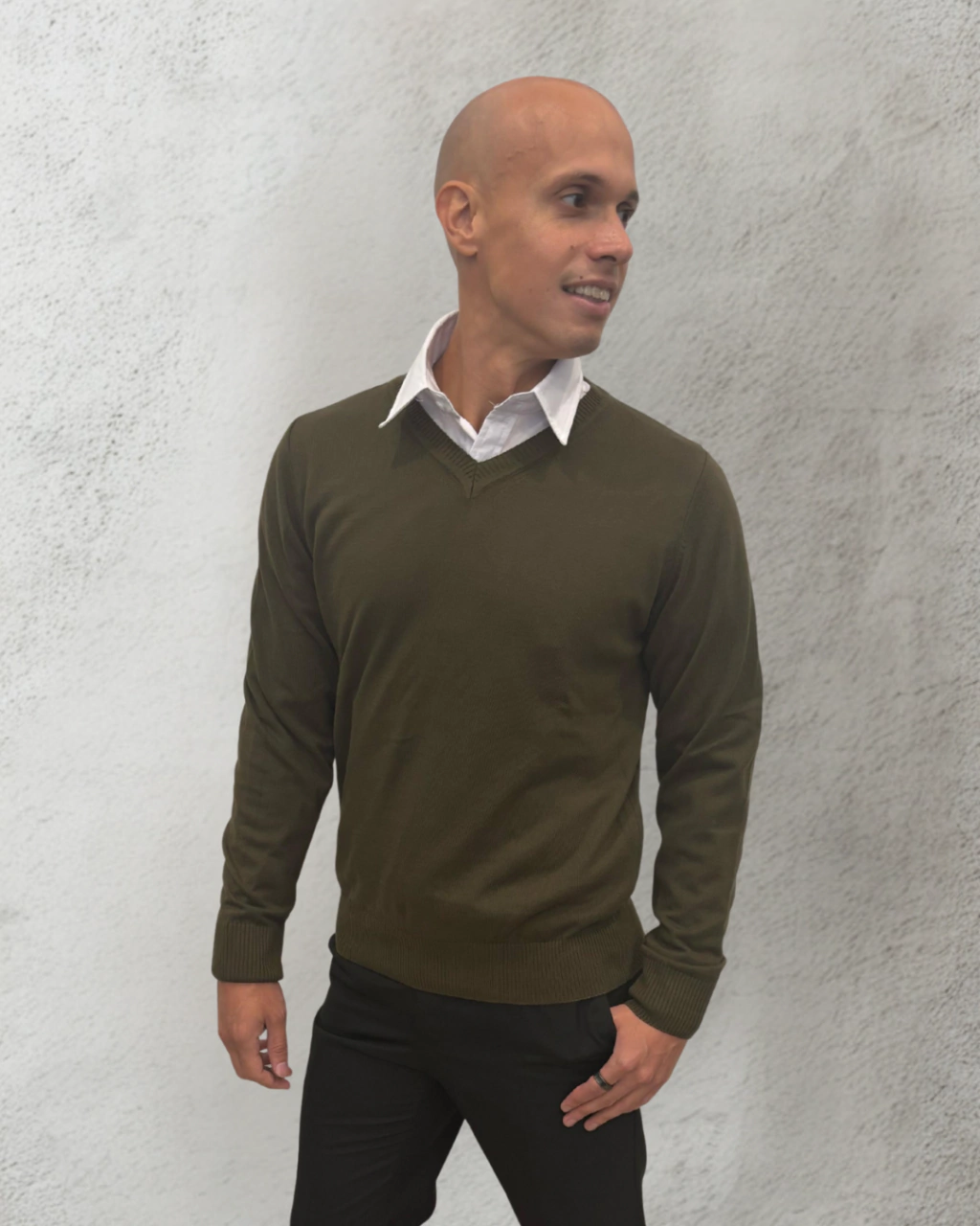 Sweater escote en V de acrilico y mezcla. Tejido con hilo de algodon de diseño liso
